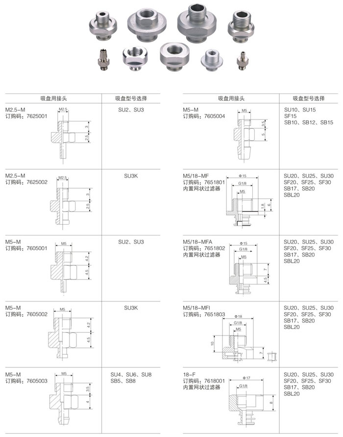 产品标题:7625001,M2.5-M,接头,吸盘用接头,磁力吸盘,真空吸盘