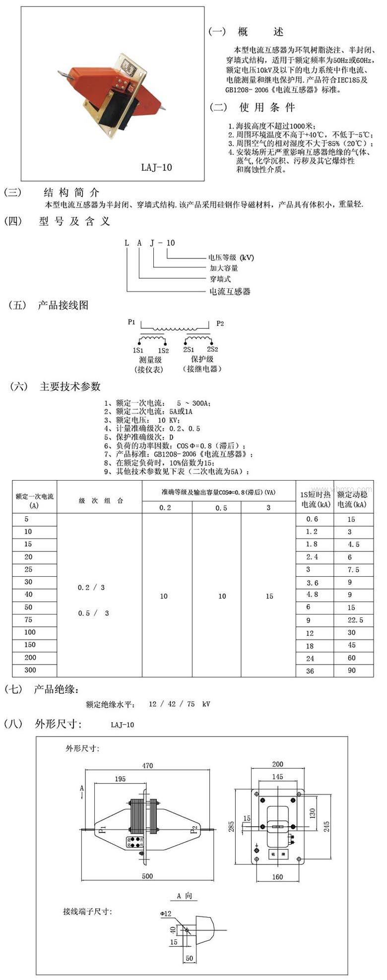 产品标题:LAJ-10(5-300/5)户内、半封闭电流互感器