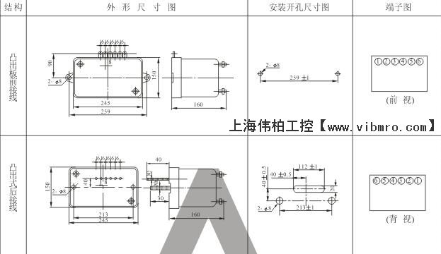 本继电器采用固定安装式壳体,其外形结构及安装开孔尺寸