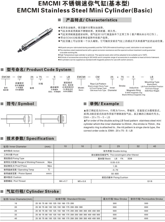 EMCMI不锈钢迷你气缸(基本型),EASUN亿日气动不锈钢气缸管,不锈钢气缸,气动气缸,气动导向气缸,不锈钢气动角座阀迷你气缸,tpm迷你气缸