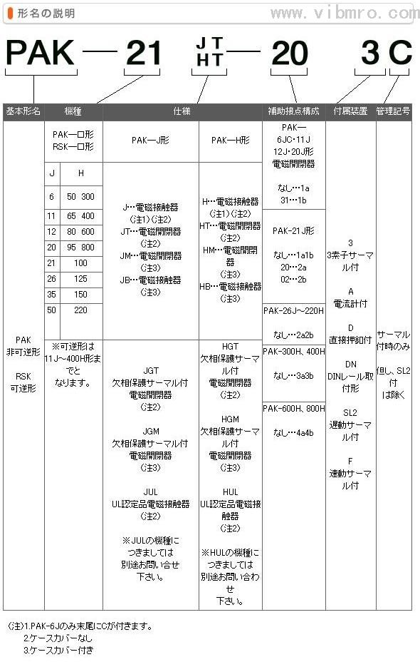 | ケースカバーなし/ サーマルリレー付 | PAK-6JTC | 1.1 | 1a |