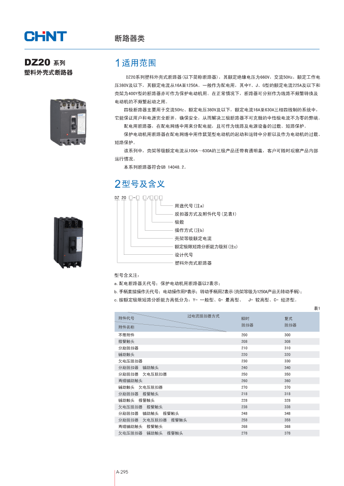 DZ20-630 电动机220V,DZ20系列塑料外壳式断路器,CHINT正泰电器
