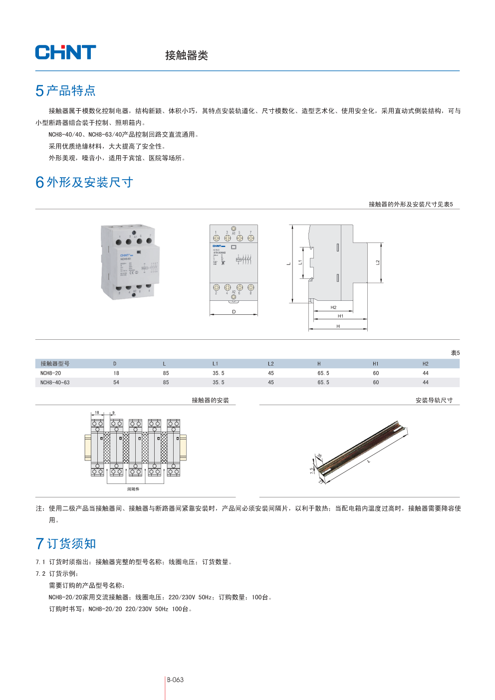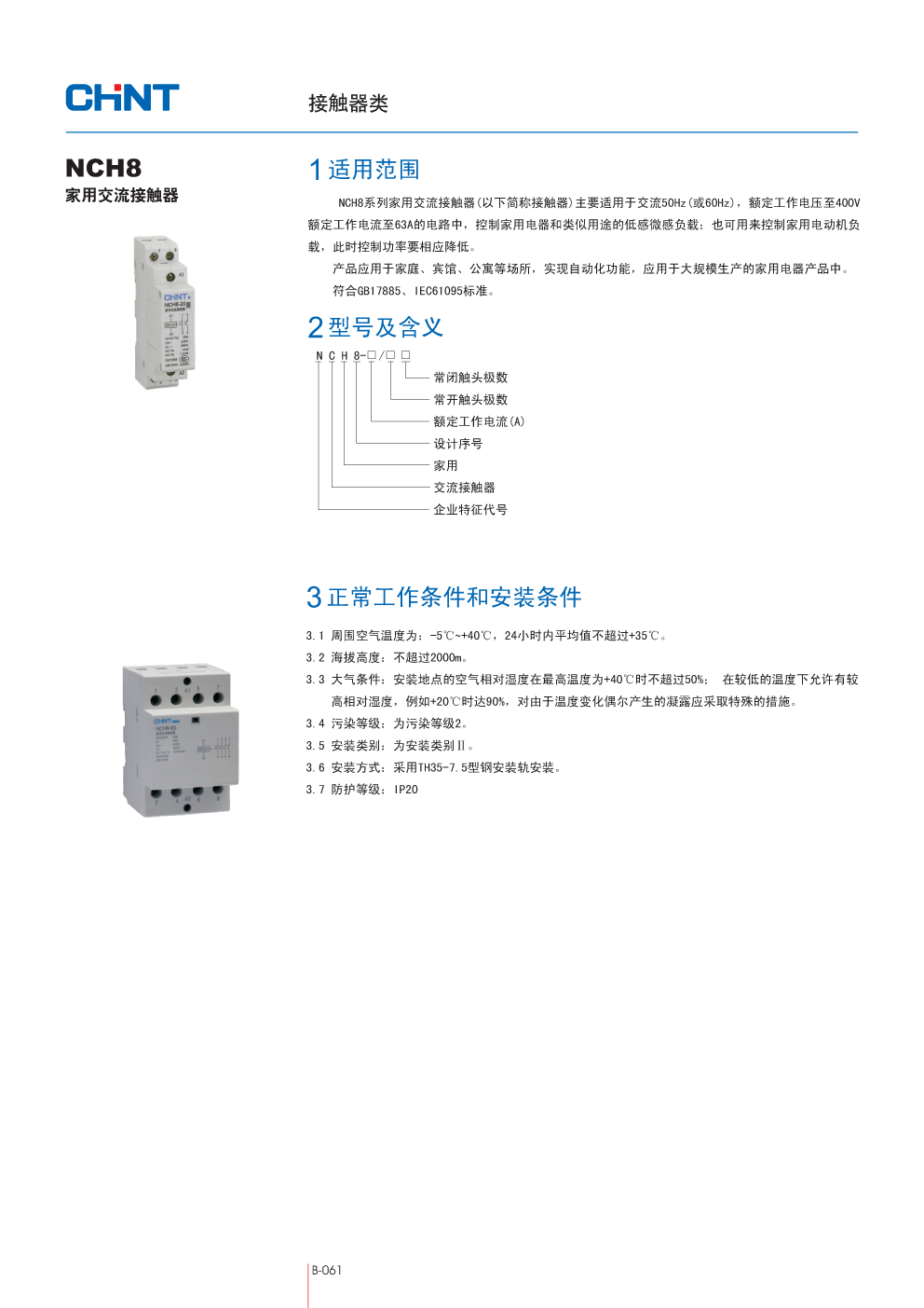符合IEC/EN61095和GB 17885标准的要求具有控制家用电器和类似用途的低感微感负载的功能具有控制家用电动机负载的功能应用于家庭、公寓、宾馆、医院等场所接触器的电寿命不小于10万次接触器属于模数化控制电器,结构新颖、体积小巧安装导轨化、尺寸模数化、造型艺术化、使用安全化